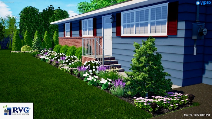 At RVG Landscape our 3D renderings go beyond patios and hardscapes — we also create beautiful, functional garden and planting designs. Whether it’s a front-yard foundation layout, seasonal flower beds, or privacy tree installations, we use realistic plant models and color palettes to help you visualize bloom patterns, textures, and year-round balance.